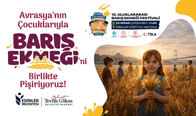 İSTANBUL, (DHA) - ESENLER Belediyesi tarafından 23 Nisan Ulusal Egemenlik ve Çocuk Bayramı'na özel geleneksel olarak düzenlenen Uluslararası Barış Ekmeği Festivali, bu yıl 16'ncı kez dünya çocuklarını bir araya getirecek