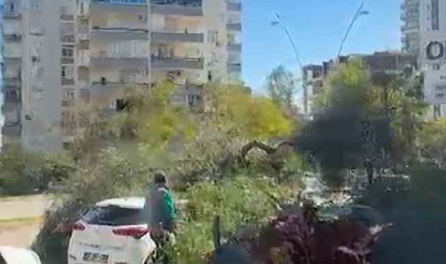 Serhat GÜLER/ADANA, (DHA)- ADANA'da etkili olan rüzgar nedeniyle bazı ağaçlar araçların üstüne devrildi