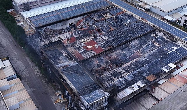 Alevlere müdahale eden 12 itfaiyeci dumandan etkilendi; yanan fabrika havadan görüntülendi