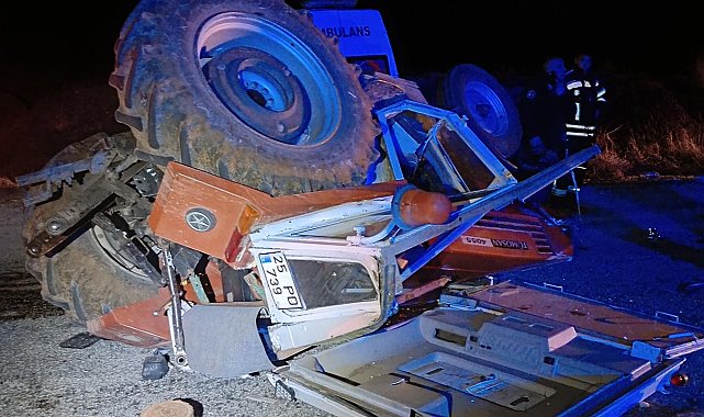 Dursun Murat AYDIN/ OLTU(Erzurum), (DHA)-ERZURUM'un Oltu ilçesinde ambulans, önünde giden traktöre çarptı