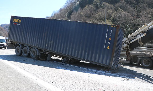 BOLU'da Anadolu Otoyolu'nda TIR, kamyon, hafif ticari araç ve iki otomobilin karıştığı kazada 5 kişi yaralandı.Kaza, saat 10.30 sıralarında Anadolu Otoyolu'nun Bolu Dağı Tüneli çıkışında meydana geldi. İstanbul yönüne giden Oğuz Özarslan yönetimindeki 41 DP 625 plakalı TIR, önünde seyreden Çetin Eyüpoğlu idaresindeki 41 ATZ 625 plakalı kamyona çarptı. Aynı yöne giden 34 FN 0254 ve 34 HLV 943 otomobil ile 41 AAL 824 plakalı hafif ticari araç da kazaya karıştı. Kaza nedeniyle TIR'ın dorsesi koptu. Kazanın ardından olay yerine sağlık ve jandarma ekipleri sevk edildi. Kazada arka arkaya birbirine çarpan iki otomobil ile hafif ticari araçta bulunan 5 kişi, hafif yaralandı. Yaralılar, olay yerine gelen sağlık ekipleri tarafından hastaneye kaldırıldı. Otoyolun İstanbul yönünde uzun araç kuyrukları oluşurken, kazayla ilgili soruşturma başlatıldı.