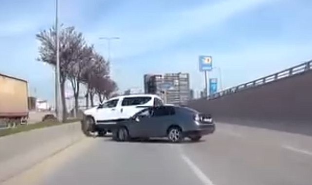 ANKARA'da trafikte makas atarak ilerleyen otomobil, hafif ticari araca arkadan çarptı. O anlar başka bir otomobilin araç kamerasına yansıdı. Ankara'da trafikte makas atarak ilerleyen sürücüsünün kontrolünü yitirdiği 06 DCN 283 plakalı otomobil, 06 BGE 795 plakalı hafif ticari araca arkadan çarptı. Çarpmanın etkisiyle savrulan hafif ticari araç, devrildi. O anlar ise trafikteki başka bir otomobilin araç kamerası tarafından kaydedildi.