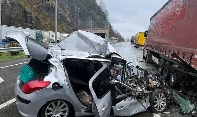Artvin'de otomobil, TIR'a çarptı; 2 ölü, 1 yaralı