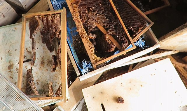 Ayı, tarihi 'hanay'lara girip balları yedi; arıcılar yardım istedi