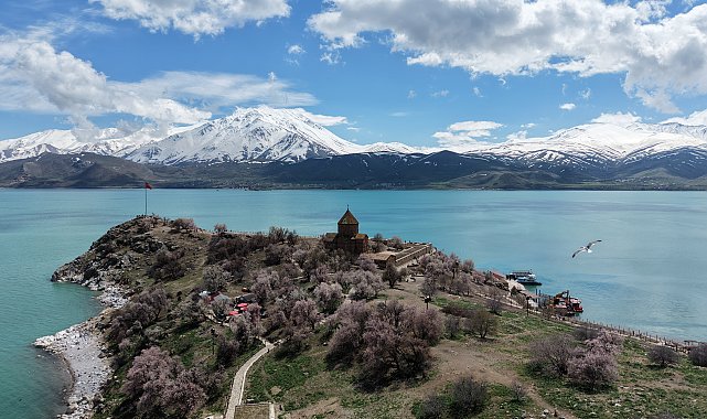 Behçet DALMAZ-Orhan AŞAN/VAN,(DHA)- VAN'da her yıl binlerce yerli ve yabancı turistin ziyaret ettiği Gevaş ilçesindeki Akdamar Adası, ilkbaharda açan badem ağaçlarıyla güzel görüntüler oluşturdu