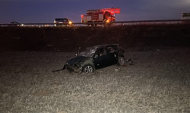 KÜTAHYA'da bariyerleri aşarak, tarlaya uçup, takla atan otomobilin sürücüsü Mustafa Topal (23), hayatını kaybetti. Kazada, 2 kişi de yaralandı.Kaza, sabah saatlerinde Kütahya-Afyonkarahisar kara yolu Aykırıkçı mevkisinde meydana geldi. Mustafa Topal, kullandığı 43 DD 080 plakalı otomobilin direksiyon hakimiyetini kaybetti. Savrulan otomobil bariyerleri aşıp, yaklaşık 5 metre yükseklikten tarlaya uçtu. Takla atan aracın sürücüsü Topal, olay yerinde yaşamını yitirdi. Araçtaki F.A. (23) ve S.K. (18) ise yaralandı.İhbar üzerine bölgeye sağlık, itfaiye, jandarma ve polis ekipleri sevk edildi. Sağlık görevlileri tarafından ilk müdahalesi yapılan yaralılar, ambulansla kaldırıldıkları Kütahya Şehir Hastanesi'nde tedaviye alındı. Mustafa Topal'ın cansız bedeni, jandarma ve savcılık incelemesinin ardından hastane morguna gönderildi. Kazayla ilgili soruşturma sürüyor.
