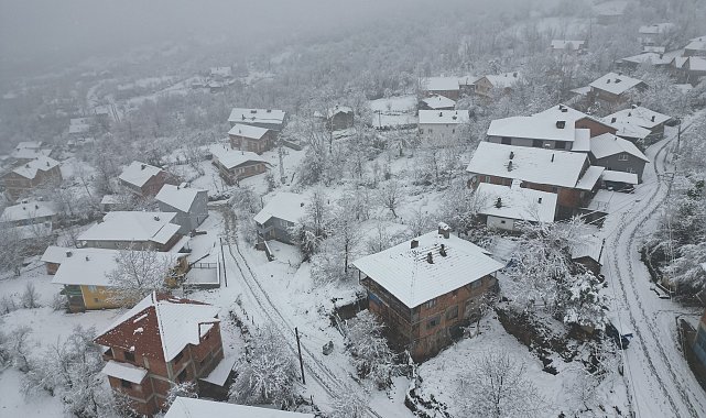 BARTIN'ın yüksek kesimlerinde kar yağışı etkili oldu. Küre Dağları Milli Parkı'nın eteklerinde bulunan köyler, beyaz örtüyle kaplandı. Kar manzarası dron ile görüntülendi.Meteoroloji Genel Müdürlüğü'nün sarı kodlu uyarısı sonrası Bartın iç kesimlerinde kar kalınlığı 20 santime ulaştı. Arıt bölgesindeki köyler beyaza bürünürken, kar yağışına hazırlıksız yakalanan sürücüler trafikte zor anlar yaşadı. Kar yağışının etkili olduğu Küre Dağları Milli Parkı'nın bazı bölümlerinde eşsiz manzaralar ortaya çıkarken; eteklerinde bulunan Sıralı, Ören ve Söğütlü köylerindeki kar manzarası dron ile görüntülendi.