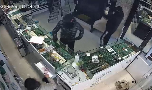 BAŞAKŞEHİR'de kuyumcuyu soymaya çalışan maskeli ve silahlı 2 kişi, iş yeri sahibinin müdahalesiyle kaçmak zorunda kaldı. Soygun girişimi güvenlik kamerasına yansırken, şüphelilerden biri yakalandı.Olay, Kayabaşı Mahallesi'nde bulunan kuyumcuda 16 Nisan saat 10.15 sıralarında meydana geldi. Maskeli 2 şüpheli kuyumcuya girerek soygun yapmak istedi. Bu sırada para sayan çalışan, şüphelileri fark ederek çığlık attı. Sesleri duyan iş yeri sahibi odadan çıkarak şüphelilerin üzerine yürüdü. Paniğe kapılan şüpheliler, kuyumcuya girdikten kısa süre sonra kaçtı. O anlarda şüphelilerden birinin elindeki silahı kuyumcuya doğrulttuğu görüldü. Şüphelilerin girişi, iş yeri sahibinin müdahalesi ve kaçış anları güvenlik kamerasına saniye saniye yansıdı. İhbar üzerine olay yerine gelen polis ekipleri, kaçan şüphelilerden birini kısa sürede yakalayarak gözaltına aldı.