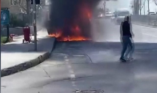 - BAŞAKŞEHİR'de seyir halindeyken motor kısmından alev alan minibüs, kısa sürede tamamen yanarak kullanılamaz hale geldi. Şoförünün son anda araçtan indiği minibüsün alev alev yandığı anlar cep telefonu kamerasıyla kaydedildi. Yangın, saat 14.00 sıralarında Ziya Gökalp Mahallesi Hürriyet Bulvarı'nda seyir halinde olan 34 DOB 938 plakalı minibüste çıktı. Edinilen bilgiye göre; jant yüklü kapalı kasa minibüsün motor kısmında dumanların yükseldiğini gören şoför Burak Özkaya, yol kenarına çektiği araçtan araçtan indi. Kısa sürede büyüyen alevler minibüsün ön kısmını sardı. Çevredekilerin yangın tüpleriyle müdahalesi yetersiz kalırken, ihbar üzerine olay yerine itfaiye ve polis ekipleri sevk edildi. Yangın sırasında araçta zaman zaman küçük çaplı patlamalar da meydana geldi. İtfaiye ekiplerinin müdahalesiyle yangın söndürülürken, araç tamamen yanarak kullanılamaz hale geldi. Yangın nedeniyle bulvarın her iki yönünde trafik yoğunluğu oluştu. Araçta bulunan jantlar ise başka bir araca aktarıldı. Yaşananları anlatan minibüs şoförü Burak Özkaya, "Bir anda önden dumanlar yükselince kendimi araçtan attım. 3 dakika içinde araç tamamen yandı. Jant taşıyorduk. Ölü ya da yaralı olmaması sevindirici" dedi.