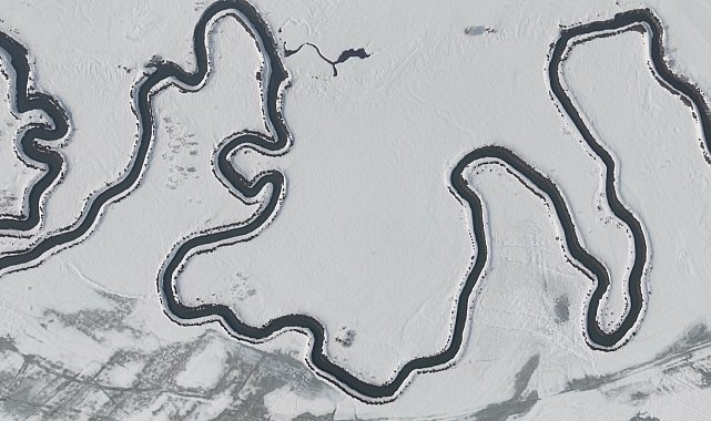 Beyaz örtüyle kaplanan Menderesler, dronla görüntülendi