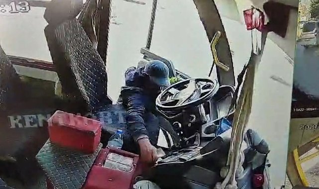 ADANA'da kimliği belirsiz kişi, bisikletle keşif yaptıktan sonra park halindeki yolcu minibüsünün kapısını açarak içindeki 4 bin TL'yi çaldı. Hırsızlık anları araç kamerasına yansıdı.Olay, sabah saatlerinde Seyhan ilçesi Fuzuli Caddesi'nde meydana geldi. Bisikletle gelen kişi, keşif yaptıktan sonra park halindeki yolcu minibüsünün kapısını açıp, içindeki 4 bin TL'yi çaldı. Şüpheli, olayın ardından bisikletle bölgeden uzaklaştı. Aracına döndüğünde paraların çalındığını fark eden şoför, polise giderek şikayetçi oldu. Hırsızlık anları araç kamerasına yansıdı. Polis, şüphelinin yakalanması için çalışma başlattı.