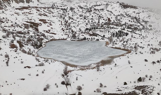 ERZİNCAN'ın Kemah ilçesi Beşikli köyünde yer alan bin 680 rakımlı Ardos Gölü, buz tuttu.Kent merkezine 30 kilometre uzaklıktaki Kemah ilçesi Beşikli köyü sınırları içerisinde yer alan, yazın piknikçilere ev sahipliği yapan Ardos gölü, hava sıcaklıklarının sıfırın altına düşmesiyle buz tuttu. Göl, doğa fotoğrafçısı Mustafa Başgöze tarafından dronla görüntülendi.