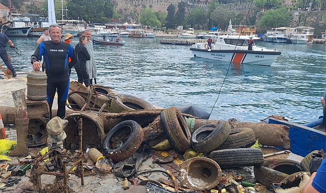 Aysu DURSUN/ANTALYA, (DHA)- ANTALYA Büyükşehir Belediyesi öncülüğünde Kaleiçi Yat Limanı'nda düzenlenen kıyı temizliği etkinliğinin ikinci etabında, 38 profesyonel dalgıcın katılımıyla denizden yaklaşık 5 ton atık çıkarıldı