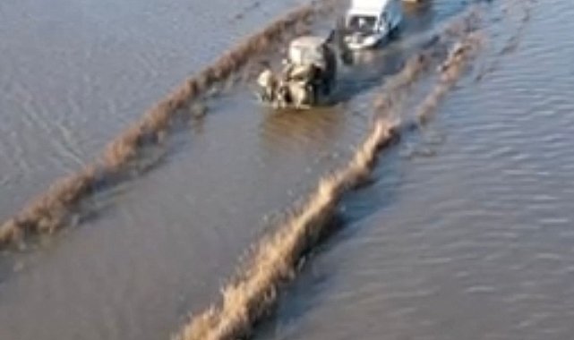 BURSA'nın Karacabey ilçesinde karın erimesi sonucu dere taştı. Taşkın nedeniyle yollar ve ekili tarım arazileri, su altında kaldı; bölgede kamyoneti ile mahsur kalan bir sürücü de kurtarıldı. Harmanlı Mahallesi'nde karın erimesi sonucu dere taşarken, yolları su bastı. Bölgede ekili olan tarım arazileri de zarar gördü. Taşan dereden akan su nedeniyle ulaşım aksarken, aracıyla bölgeden geçmeye çalışan bir sürücü, kamyoneti ile mahsur kaldı. İhbarla bölgeye itfaiye, BUSKİ ve AFAD ekipleri sevk edildi. Sürücü, ekipler tarafından bulunduğu yerden kurtarıldı. Yol geçici süreyle ulaşıma kapatılırken, bölgede ulaşım alternatif güzergahlardan sağlanıyor.