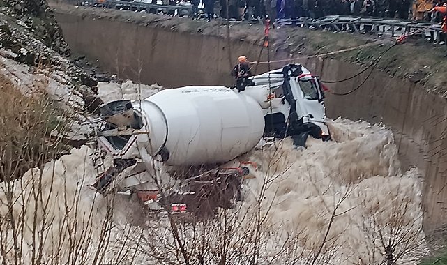 Dereye yuvarlanan beton mikserinin şoförü kayboldu