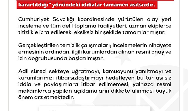 DMM'den 'olay yeri incelemesi bitmeden temizlik başladı' iddiasına ilişkin açıklama