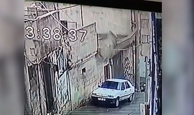ŞANLIURFA'da bir evin damını çevreleyen duvar, park halindeki otomobilin üzerine devrildi. Güvenlik kamerasına yansıyan olayda otomobilde hasar oluştu.Olay, öğle saatlerinde Dede Osman Mahallesi'nde meydana geldi. Kentte etkili olan yağmur sırasında, park halindeki 33 KS 636 plakalı otomobilin üzerine tek katlı bir evin damını çevreleyen duvar devrildi. Otomobilin üzerine düşen briketler nedeniyle araçta hasar oluştu. Bu arada olay, sokaktaki bir iş yerinin güvenlik kamerasına yansıdı. Görüntülerde, olay sırasında yoldan geçen bir kişinin son anda kurtulduğu görüldü.