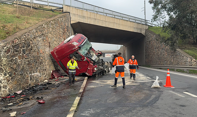 Erol POLAT/ÇAYIROVA(Kocaeli), (DHA)- KOCAELİ'nin Çayırova ilçesinde alt geçidin girişinde istinat duvarına çarpan TIR'ın şoförü, ağır yaralandı