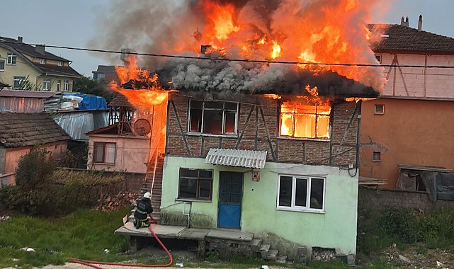 Düzce'de 2 katlı ev alev alev yandı