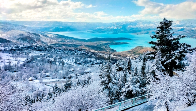 Ermenek ilçesinde gece boyu aralıklarla yağan kar, kenti beyaza bürüdü. Ağaçlar ve meyve bahçeleri karla kaplandı. Toros Dağları eteklerinde turkuaz rengi ve 218 metre yüksekliğiyle Ermenek Baraj Gölü, karla birlikte güzel görüntüler oluşturdu. Meteoroloji verilerine göre bölgede bu gece ve yarın da kar geçişleri bekleniyor