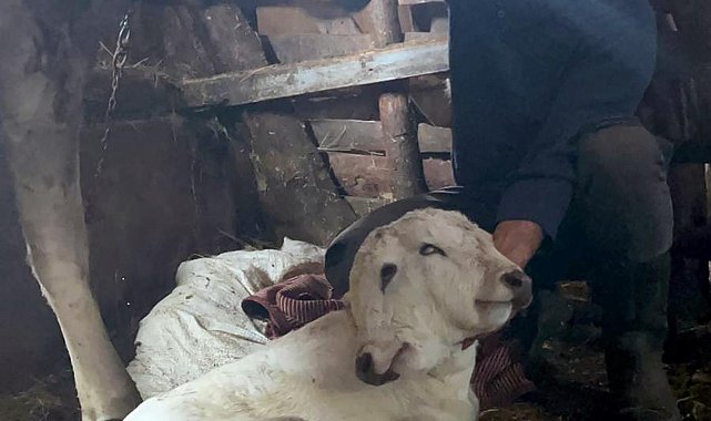 ERZURUM'un Şenkaya ilçesine bağlı Beşpınarlar Mahallesi'nde çift başlı buzağı doğdu.Şenkaya ilçesine bağlı kırsal Beşpınarlar Mahallesi'nde hayvancılıkla uğraşan Korkmaz Hocaoğlu'nun (56) gebe ineği sancılandı. Yapılan kontrollerde doğacak buzağının çift başlı olduğu belirlenince veteriner hekimden yardım istendi. İneği kontrol eden veteriner hekim, buzağıyı sezaryen yöntemi ile aldı. 2 başı, 2 kulağı, 4 gözü bulunan buzağının sağlıklı olduğu belirtildi. Korkmaz Hocaoğlu, "56 yaşındayım, yıllardır hayvancılık yapıyorum. İlk defa böyle bir olay gördük. Buzağının 2 başı, 2 kulağı ve 4 gözü var. Şu anda sağlık durumu iyi. Annesini emmesinde de herhangi bir sıkıntı yok" dedi.