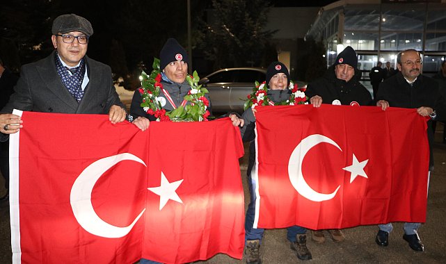 Erzurum'da kayağın özel ikizlerine coşkulu karşılama
