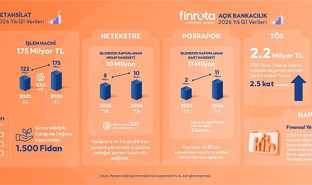 FİNANSAL teknoloji şirketi Finrota, 2026 yılının ilk çeyreğine ilişkin performans sonuçlarını açıkladı.2026 yılının ilk çeyreğinde Netahsilat aracılığıyla gerçekleştirilen işlem adedi, bir önceki yılın aynı dönemine göre yüzde 11 oranında artarak 3 milyona ulaştı. Bu işlemler sonucunda çeyrek boyunca toplam 175 milyar TL tahsilat gerçekleştirildi.İşletmelerin tahsilat süreçlerini dijitalleştiren Netahsilat platformundan geçen işlemlerin ödeme seçeneklerine bakıldığında; yüzde 24 oranla peşin ödeme ilk sırada yer alırken, onu yüzde 16 ile 6 taksitli ve yüzde 15 ile 3 taksitli işlemler izledi.'Her saniyesi değerli' yaklaşımıyla hareket eden Finrota'nın, yılın ilk çeyreğinde yüzde 99,99 erişim oranı sağlayarak kesintisiz bir hizmet sunduğu kaydedildi. Müşteri memnuniyetini operasyonlarının merkezine koyan şirketin, bu dönemde destek taleplerine ortalama 15 saniye gibi bir sürede yanıt verdiği aktarıldı. Finrota'nın ilk çeyrekte müşteri memnuniyetinin ise 90 puana ulaştığı bildirildi.2026'nın ilk çeyreğinde Finrota'nın dijital tahsilat çözümlerinin en çok tercih edildiği şehirler sırasıyla İstanbul, Kocaeli ve Bursa olarak öne çıktı. Sektörel bazda incelendiğinde ise otomotiv, tarım ve yapı sektörlerinden gelen yüksek işlem hacimleri ilk çeyrek verilerinde dikkat çekti. Bu sektörlerdeki işletmelerin, Finrota'nın otomatik tahsilat ve açık bankacılık çözümleri sayesinde hem zaman kazandı hem de operasyonel verimliliklerini üst seviyeye taşıdığı aktarıldı. Ayrıca, iklimlendirme sektöründe Finrota kullanımının bir önceki yılın aynı dönemine göre yüzde 50 oranında artığı kaydedildi. 2026 YILI İLK ÇEYREK AÇIK BANKACILIK VERİLERİŞirket tarafından yapılan açıklamada şu bilgilere yer verildi:"Finrota'nın yenilikçi açık bankacılık çözümü Netekstre, 2026'nın ilk çeyreğinde 10 milyonun üzerinde banka hareketini dijitalleştirip raporladı. Bu teknolojik dönüşüm sayesinde işletmeler, geleneksel ve manuel süreçlerin yarattığı iş yükünden büyük oranda tasarruf etti. Sadece 3 ayda elde edilen bu kazanım, 59 tam zamanlı personelin 3 ay boyunca harcayacağı toplam mesaiye eş değer bir verimlilik sağladı. Netekstre ile finansal veri yönetimi artık dakikalar değil, saniyeler içinde hatasız bir şekilde tamamlanıyor."Yılın ilk çeyreğinde Posrapor ile 11 milyon kart hareketi işlenerek raporlandı ve platformun kullanımı bir önceki yılın aynı dönemine göre 5 kat artış gösterdi. Geleneksel yöntemlerle yönetilmesi binlerce saat sürecek olan bu devasa veri trafiği, Posrapor'un gelişmiş altyapısı sayesinde saniyeler içinde analiz edilebilir hale geldi. Bu tablo, standart çalışma koşulları altında yaklaşık 21 tam zamanlı personelin üç ay boyunca sadece bu işle uğraşmasına eş değer bir iş yükünün teknoloji tarafından devralındığını gösterdi."Finrota'nın toplu para transfer operasyonlarındaki gücü TÖS, yılın ilk çeyreğinde sergilediği performansla dikkatleri üzerine çekti. Toplamda 2,2 milyar TL'lik transfer hacmine ulaşan TÖS, bir önceki yılın aynı dönemine göre 2,5 kat büyüme kaydederek dijital para trafiğindeki liderliğini pekiştirdi. Nakit akışı yönetimindeki kritik çözüm E-DBS ile tahsile gönderilen fatura tutarı ise yine aynı dönemde %45 oranında artarak 8 milyar TL'ye ulaştı. Bu büyüme, işletmelerin nakit akışını yönetirken dijitalleşmeye ve güvenli sistemlere olan bağlılığının en somut göstergesi oldu."2026 yılının ilk çeyreğinde Nakit Akış Platformu NAP360; bütçe disiplini ve nakit akış tahminlemede işletmelere tam kontrol sağladı. NAP360, gelişmiş senaryo analizi yetkinlikleriyle şirketlerin finansal çevikliği en üst seviyeye taşıdı."Sürdürülebilirlik odağını kurumsal sorumluluk projeleriyle destekleyen Finrota, ağaçlandırma projesi kapsamında toplam 1.500 fidan bağışına ulaşarak doğaya sunduğu katkıyı büyütmeye devam ediyor. Çevresel etkiyi uzun vadeli bir perspektifle ele alan şirket, bu proje ile sürdürülebilir bir gelecek için sorumluluk üstlenmeyi sürdürüyor."Finrota Genel Müdürü İlknur Uzunoğlu, 2026 yılı ilk çeyrek sonuçlarını şöyle değerlendirdi:"2026 yılına, Netahsilat ve açık bankacılık çözümlerimizle ulaştığımız güçlü büyüme rakamlarıyla harika bir başlangıç yaptık. Yılın ilk çeyreğinde yakaladığımız başarı, işletmelere kesintisiz bir güven sunduğumuzun en net göstergesi oldu. İş ortaklarımıza sağladığımız eşsiz zaman ve kaynak tasarrufu, sunduğumuz çözümlerin yarattığı gerçek değeri ortaya koyuyor. Netahsilat'tan Netekstre'ye, NAP360'dan TÖS'e kadar tüm ürün portföyümüzü; işletmelerin operasyonel yükünü hafifleten, nakit akışını güçlendiren ve onlara daha öngörülebilir, proaktif bir finansal yönetim anlayışı kazandıran stratejik araçlar olarak konumlandırmaya devam ediyoruz. B2B ekosisteminde yarattığımız bu güçlü ivmeyi ve ödeme dünyasındaki derin tecrübemizi şimdi yeni bir segmente taşımanın da heyecanı içindeyiz. Farklı ödeme yöntemlerini ve sağlayıcılarını tek bir platformda kusursuzca birleştiren yeni nesil ödeme orkestrasyon çözümümüzle çok yakında B2C tarafında da değer yaratmaya başlayacağız. İş ortaklarımızın bize duyduğu sarsılmaz güvenle, önümüzdeki dönemde de inovasyon ve müşteri odaklılık temelinde hizmetlerimizin kapsamını genişletmeye, veri odaklı vizyonumuzla sektörün verimlilik rotasını çizmeye devam edeceğiz. Bu başarı yolculuğunda emeği geçen tüm ekip arkadaşlarıma ve bize güvenen değerli müşterilerimize bir kez daha teşekkür ediyorum."