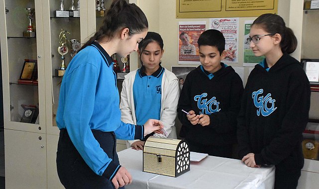 Nevra UÇKAÇ/İZMİR, (DHA)- İZMİR'deki Gülen Kora Ortaokulu'nun öğrencileri, Muğla'da Duchenne Musküler Distrofi (DMD) hastası 4,5 yaşındaki Göktuğ Karakaya'nın tedavisine destek olmak amacıyla 'İyilik Kutusu' kampanyası başlattı