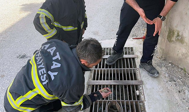 Hatay'da mazgala düşen civciv kurtarıldı