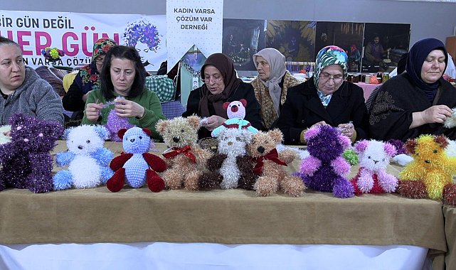 Selçuk BAŞAR-Efnan DEMİREREN/TRABZON, (DHA)- TRABZON'da Kadın Varsa Çözüm Var Derneği çatısı altında bir araya gelen gönüllü kadınlar, hastanede tedavi gören çocuklar için oyuncak ayı örüyor