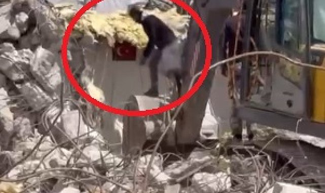 İş makinesi operatörünün Türk bayrağı hassasiyeti kamerada