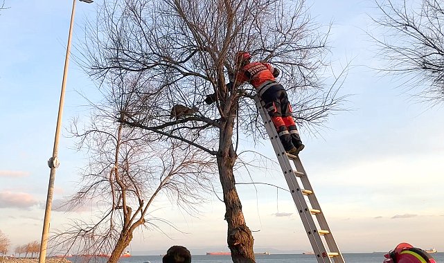 İhsan DÖRTKARDEŞ/İSTANBUL, (DHA)- AVCILAR sahilinde 'Şirin' isimli kedi kuş avlamak isterken çıktığı ağaçta mahsur kaldı