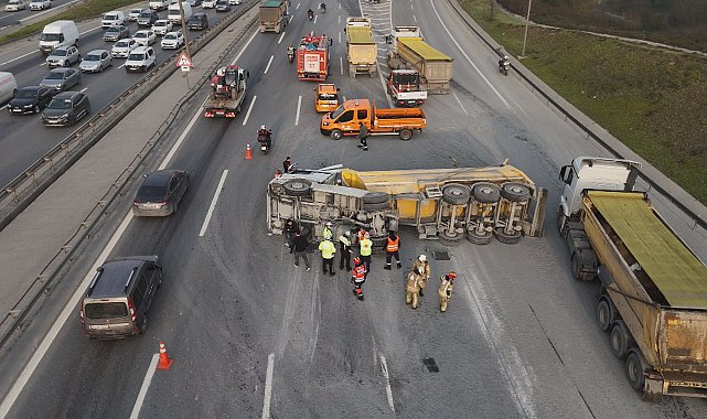 Emre KURT / İSTANBUL, (DHA)- Eyüpsultan TEM Otoyolu Edirne İstikametinde şoförün kontrolünü kaybettiği hafriyat kamyonu devrildi