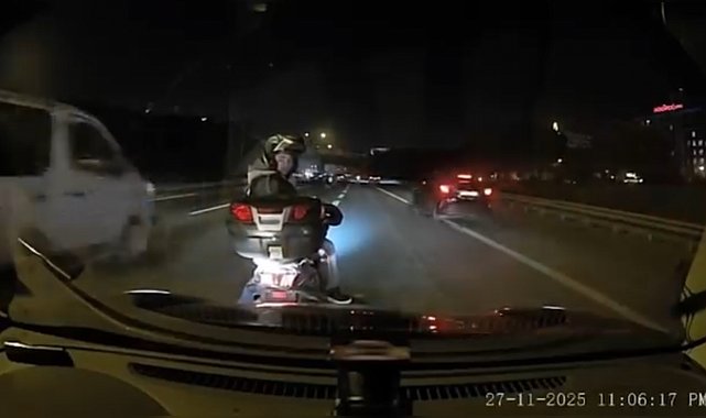 - KAĞITHANE TEM Otoyolu'nda ilerleyen motosiklet sürücüsü bir kadın yolds sağ şeride geçmek isterken, kendisine korna çalan araç sürücü Harun S.'nin önünde durdu. Otoyolun ortasında yanındaki çocukla motosikletten inen kadın, çocuğun hayatını tehlikeye atarak, Harun S.'ye 'Görmüyor musun dikkat et' diyerek çıkıştı. Harun S. ise kadına 'Ablacığım TEM'in ortasında durdun, çocuğu kenara al arabalar geliyor' sözleriyle karşılık verdi. Yaşananlar araç kamerasına yansırken, kadının hem kendisinin hem de çocuğun hayatını tehlikeye attığı anlar kask kamerasına yansıdı. Olay, dün saat 23.00 sıralarında Kağıthane TEM Otoyolu Edirne istikametinde meydana geldi. İddiaya göre otoyolda ilerleyen araç sürücüsü Harun S., aniden önüne kıran motosiklet sürücüsü kadına korna çalarak tepki gösterdi. Bunun üzerine kadın, otoyolun ortasında aracın önünde durdu. Akan trafikte yanındaki çocukla motosikletten inen kadın, araç sürücüsünün yanına giderek tartışmaya başladı. 'TEM'İN ORTASINDASIN ÇOCUĞU KENARA AL'Kadın Harun S.'ye 'Görmüyor musun dikkatli ol' diyerek çıkıştı. Harun S. ise kadına 'TEM'in ortasındasın şu an, çocuğu kenara al, arabalar geliyor. Ablacığım şeridimde gidiyorum şu an' sözleriyle karşılık verdi. Tartışma sonrasında kadın, kafasında kask olmadığı fark edilen çocukla motosiklete bindi. BAŞKA BİR MOTOSİKLET DAHA DURDU Bu sırada otoyolda duran başka bir motosiklet sürücüsü de kadının yanına geldi. 3 kişinin bulunduğu diğer motosiklette sürücü dışındaki 1'i çocuk 2 kişinin de kasksız olması dikkat çekti. Tartışmanın ardından araç sürücüsü olay yerinden ayrılırken, yaşananlar araç kamerasına yansıdı.