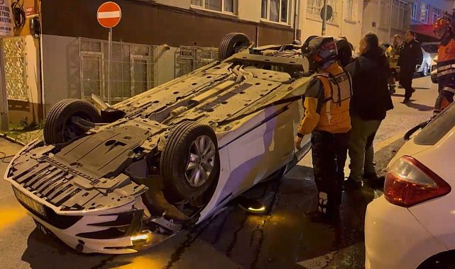 İstanbul - Üsküdar'da park halindeki 3 araca çarpan otomobil, takla attı: 1 yaralı