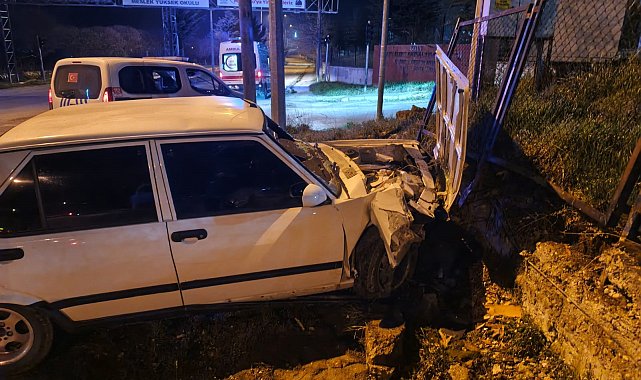 Hızır İlyas YILDIRIM/MUDURNU, (Bolu), (DHA)- BOLU'nun Mudurnu ilçesinde, istinat duvarına çarpan otomobilin sürücüsü M