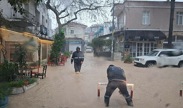 Tolga TAHÇI-Kadir ÖZEN/İZMİR, (DHA)- İZMİR'in Çeşme ilçesinde etkili olan sağanak, hayatı olumsuz etkiledi