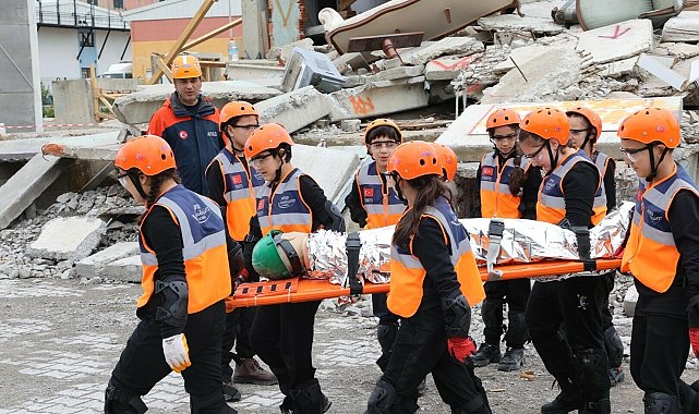Tolga TAHÇI/İZMİR, (DHA)-İZMİR'de 23 Nisan Ulusal Egemenlik ve Çocuk Bayramı'nda '23 Nisan'da Çocuklar Afeti Yönetiyor' etkinliği gerçekleştirildi