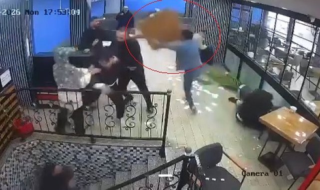 Kafede karşılaşan husumetli iki grup, birbirlerine masa ve sandalyelerle saldırdı; o anlar kamerada