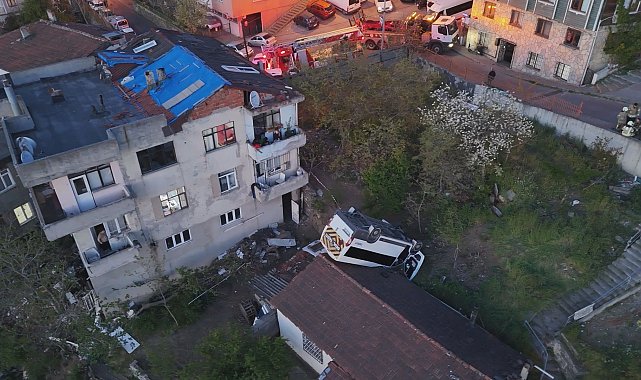 KAĞITHANE'de yokuştan aşağı inerken şoförünün direksiyon hakimiyetini kaybettiği okul servisi önce takla attı, ardından bir evin çatısına düştü. Araçta sıkışan şoför, itfaiye ekipleri tarafından bulunduğu yerden kurtarıldı. Serviste öğrencilerin olmadığı öğrenilirken, kazada yaralanan şoför Mustafa F. ambulansla hastaneye kaldırıldı. Çatıya düşen servis ise dronla havadan görüntülendi.Kaza, saat 18.50 sıralarında Çağlayan Mahallesi'nde meydana geldi. Edinilen bilgiye göre, yokuş aşağı inerken şoförü Mustafa F.'nin direksiyon hakimiyetini kaybettiği 34 LVU 535 plakalı okul servisi önce takla attı, ardından bir evin çatısına düştü. SERVİSTE ÖĞRENCİLERİN OLMADIĞI ÖĞRENİLDİÇevredekilerin ihbarı üzerine olay yerine itfaiye, acil sağlık ve polis ekipleri geldi. İtfaiye ekipleri araçta sıkışan şoförü bulunduğu yerden kurtardı. Sağlık ekiplerinin kontrollerinde kazada yaralandığı belirlenen şoför Mustafa F. ambulansla Okmeydanı Eğitim ve Araştırma Hastanesi'ne kaldırıldı. Okul servisinde öğrencilerin olmadığı öğrenildi. Kazaya ilişkin inceleme başlatıldı. Evin çatısına düşen servis ise dronla havadan görüntülendi.'DUVARA VURUP, DUVARDAN ÇATIYA DÜŞÜYOR'Okul servisinin çatısına düştüğü evde yaşayan İsmail Koç, "Minibüs duvara vurup, duvardan çatıya düşüyor. İçinde şoför yaralıydı, çok geçmiş olsun. Biz başkaları da var diye çok şükür sadece şoför varmış. Olay sırasında biz dışarıda iş yerindeydik. Evde kimse yoktu, komşular bize haber verdi geldik. Allah beterinden saklasın" dedi.