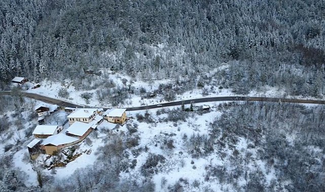 KARABÜK'ün yüksek kesimlerinde gece saatlerinde etkili olan yağışın ardından, ormanlar kapla kaplandı. Bölgedeki manzara dronla görüntülendi.Kentin yüksek kesimlerinde gece saatlerinde kar etkili oldu. Yağışın ardından Karabük-Bartın kara yolunun 1030 rakımlı Ahmet Usta mevkisinde sürücüler, araçlarıyla yavaş ilerlemek zorunda kaldı. Yağışın ardından ormanlar da karla kaplandı. Beyaza bürünen çam ormanlarının manzarası, dronla görüntülendi.