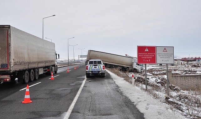 KARS-Ardahan kara yolunda kar yağışı sonrası oluşan gizli buzlanma kazaya yol açtı. Yoldan çıkan TIR nedeniyle trafik akışı bir süre tek şeritten sağlandı.Kaza, Kars-Ardahan kara yolu Ani Ören Yeri Kavşağı mevkisinde meydana geldi. N.K.'nin yolda oluşan gizli buzlanma nedeniyle kontrolünü yitirdiği 73 AAE 621 plakalı TIR, kayarak yoldan çıktı. İhbarla kaza yerine bölge trafik ekipleri sevk edildi. TIR'da hasar oluşurken, kara yolunda trafik akışı bir süre kontrollü olarak tek şeritten sağlandı. TIR'ın kaldırılması sonrası trafik normale dönerken, kaza ile ilgili inceleme başlatıldı.
