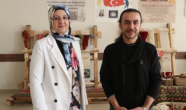 Furkan KAVUKLU/KAYSERİ, (DHA)- KAYSERİ'nin Bünyan ilçesinde Türk Dili ve Edebiyatı öğretmeni İsmail Solak ile Almanca öğretmeni Şengül Özcan Tutar, unutulan halı dokuma geleneğini yaşatmak için görev yaptıkları Bünyan Fen Lisesi'nde halı dokuma atölyesi kurdu