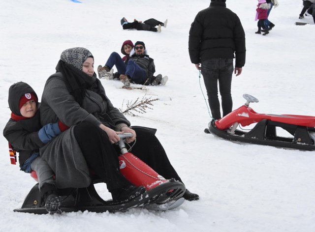 Hafta sonu tatilini de değerlendirenlerin akın ettiği kayak merkezinde, renkli görüntüler ortaya çıktı. Bölgeye gelenlerden bazıları kızaklarla, bazıları da poşet ya da tepsilerle kayarak karın keyfini çıkardı. Kent merkezine yaklaşık 60 kilometre mesafedeki Derbent ilçesinde 2 bin 385 rakımlı Aladağ'daki kayak merkezi, kar yağışı sonrası doğa sporu tutkunlarının ilgi odağı oldu. Hafta sonu ve sömestir tatili nedeniyle yoğunluk yaşanan Aladağ Kayak Merkezi'nde, şu an amatör düzeyde kayak yapılabiliyor. Bölgeye gelenlerden bazıları kızaklarla, bazıları da poşet ya da tepsilerle kayarak karın keyfini çıkardı. Ortaya renkli görüntüler çıkarken; kayak merkezi projesi dahilindeki 30 kilometrelik pist tamamlandığında Aladağ'ın, doğa sporlarının merkezi noktalardan birisi olması hedefleniyor. 'KAYAK KEYFİ YAŞIYORUZ'Kayak yapanlardan Mustafa Dişli, "İlk defa geliyoruz. Sömestir tatilinde çocuklarla beraber gelip, değerlendirelim dedik. Biz de çocuk olduk ve biz de kayıyoruz ve kayak keyfi yaşıyoruz" dedi. Kayak yapmaya ailecek geldiklerini belirten Selim Karamanlı ise Ailecek geldik. Burası çok güzel ve güzel bir merkez yapmışlar. Kızakla kayıyoruz" diye konuştu. Sini üzerine oturup, kayan İsa Yakarel, "Kalabalıktan kayacak yer kalmadı. Kızaklarımız da kalmadı. Araba da sini vardı. Biz de sininin üzerine oturup, kayıyoruz. Sini, kızaklardan hızlı kayıyor" dedi. 'TELEFERİĞİMİZ OLSA YORULMAYIZ'Çocuklarıyla birlikte vakit geçirmeye geldiklerini ifade eden Tuna Gündüz de şunları söyledi: "Çocuklarla vakit geçirmeye geldik. Bu kayak merkezinden memnunuz; ama bazı eksikliklerimiz var. Şimdi burada teleferiğimiz olsa yukarı çıkarken yorulmayız. Özellikle çocuklar çok yorulduğu için fazla kayak yapamıyor. Araçlar için park alanı yetersiz. Acil bir durum olsa sıkıntı olacak. Biraz önce de bunun örneği yaşandı. O yüzden bu eksiklere çözüm bulunması gerekir" diye konuştu. (DHA)FOTOĞRAFLI