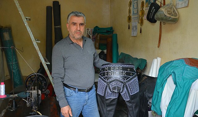 İpek KALAY/DEMİRCİ, (Manisa), (DHA)- MANİSA'nın Demirci ilçesinde yaşayan kispet ustası Murat Kozak (52), ata sporu yağlı güreşin kıyafeti kispeti geleneksel yöntemlerle üreterek Türkiye'nin farklı illerindeki pehlivanlara gönderiyor