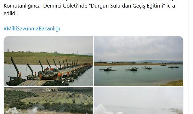 ÇANAKKALE'nin Gelibolu ilçesindeki Demirci Göleti'nde, 2'nci Kolordu İstihkam Alay Komutanlığı ve 18'inci Mekanize Piyade Tugay Komutanlığı tarafından 'Durgun Sulardan Geçiş Eğitimi' yapıldı.Milli Savunma Bakanlığı'nın sanal medya hesabından yapılan paylaşımda, "2'nci Kolordu İstihkam Alay Komutanlığı ve 18'inci Mekanize Piyade Tugay Komutanlığınca, Demirci Göleti'nde 'Durgun Sulardan Geçiş Eğitimi' icra edildi" denilerek, eğitime ilişkin fotoğraflara yer verildi.