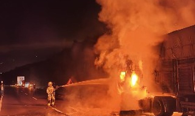 BURSA'nın Kestel ilçesinde hareket halindeyken yangın çıkan mısır yüklü TIR, alev alev yandı.Hüseyin T. (35) 16 BUD 825 plakalı mısır yüklü TIR ile İnegöl'den Bursa yönüne ilerlerken, saat 05.00 sıralarında motor kısmından duman çıktığını fark etti. Bursa-Ankara karayolu Kestel ilçesi Ümitalan Mahallesi mevkisinde aracını yol kenarına park eden sürücü, itfaiyeye haber verdi. İhbar üzerine bölgeye itfaiye ekipleri sevk edildi. Ekiplerin müdahalesiyle söndürülen TIR, kullanılamaz hale geldi.