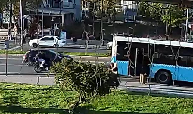 TEKİRDAĞ'ın Çorlu ilçesinde yolcu almak için durağa yanaşan otobüse arkadan çarpan motosikletteki 2 kişinin yaralandığı kazanın güvenlik kamerası görüntüleri ortaya çıktı.Kaza, dün saat 19.30 sıralarında Kazimiye Mahallesi Omurtak Caddesi Şehitlik mevkisinde meydana geldi. Tekirdağ Büyükşehir Belediyesi'ne ait M.Ç. yönetimindeki 59 EB 386 plakalı otobüs, yolcu indirip bindirmek için durakta durdu. Bu sırada M.S.K. idaresindeki 59 AIB 859 plakalı motosiklet, otobüse arkadan çarptı. Kazada devrilip, otobüsün altına giren motosikletin sürücü M.S.K. ile arkasındaki E.B. yaralandı. Yaralılara ilk müdahale yoldan geçen bir doktor tarafından yapıldı. İhbar üzerine kaza yerine polis ve sağlık ekipleri sevk edildi. 'BENİ YANINA GÖTÜRÜN'Motosiklet sürücüsü M.S.K., kazanın ardından ilk müdahalesini yapan sağlıkçılardan arkadaşına bakmasını istedi. M.S.K., "Abi ben iyiyim de o çocuğa bakın. Beni direkt onun yanına götürür müsün abi. Abi ben iyiyim ne olursun beni onun götürür müsün" dedi. Yaralılar Çorlu Devlet Hastanesi'ne kaldırıldı. Durumu ağır olan E.B., Tekirdağ Dr. İsmail Fehmi Cumalıoğlu Şehir Hastanesi'ne sevk edildi. E.B.'nin hayati tehlikesinin bulunduğu öğrenildi.Hastanede tedavisi tamamlanan M.S.K., taburcu edildi. Bu arada, kazanın, bir iş yerinin güvenlik kamerasına yansıyan görüntüleri ortaya çıktı. Kazayla ilgili inceleme sürüyor.
