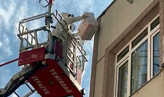 TEKİRDAĞ'ın Malkara ilçesinde, pazar yerindeki apartmanın dış cephesine oğul veren arılar, yaya ve araç trafiğinin durmasına neden oldu. Caddede paniğe neden olan arılar itfaiye ekipleri ile bir arıcı tarafından kutuya alınarak, bölgeden uzaklaştırıldı.İlçenin en işlek bölgesinde yer alan Şehitlik Caddesi'nde kurulan Pazartesi Pazarı'nda, 3 katlı bir binanın en üst katında dış cepheye oğul veren bal arıları, kısa süreli paniğe neden oldu. Çevredekiler ve esnafın ihbarı üzerine bölgeye itfaiye ekipleri sevk edildi. Ekipler, bölgeye gelen arıcı Hakan Türkoğlu'nun yardımına başvurdu. Türkoğlu, özel kıyafetler giyerek merdivenli itfaiye aracıyla arıların yanına yaklaşıp, onları kutuya aldı. Arılar bölgeden uzaklaştırılırken, cadde bir süre yaya ve araç trafiğine kapatıldı.