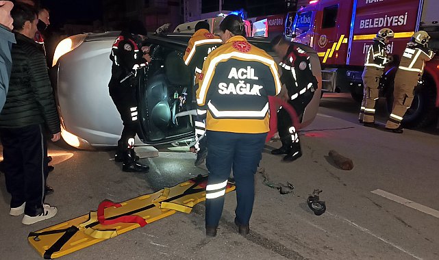 Muammer ŞEN/ KARAMAN, (DHA)- KARAMAN'da yönetimindeki otomobille, park halindeki başka bir otomobile çarpıp takla atan sürücü Fatma Kara (31), mahsur kaldığı araçtan itfaiye yardımıyla çıkarıldı